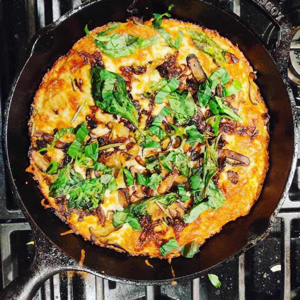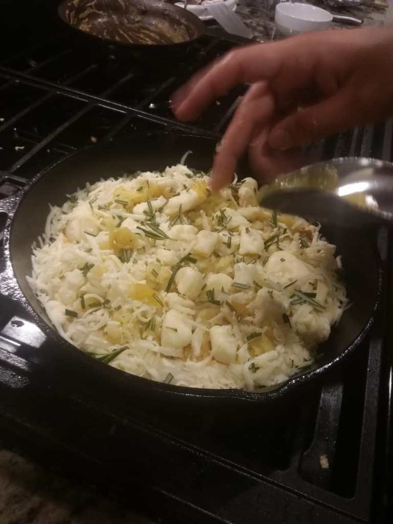 - Grease cast iron skillet with EVOO.